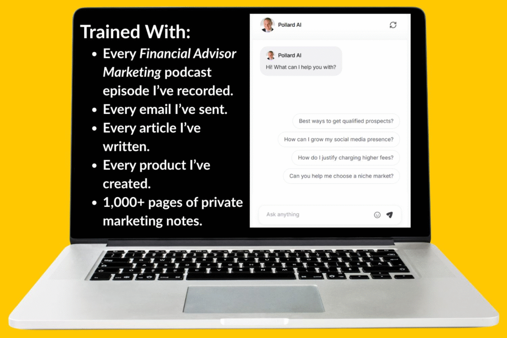 Pollard AI is unlike any other marketing assistant on the market. While most AI tools are trained on generalized data from across the internet, Pollard AI is custom-trained on a wealth of knowledge specifically crafted for financial advisors. From over 2,700 marketing emails to more than 300 podcast episodes, every piece of content Pollard has created feeds into the tool, ensuring that the advice it provides is relevant, practical, and specific to the unique challenges financial advisors face.
